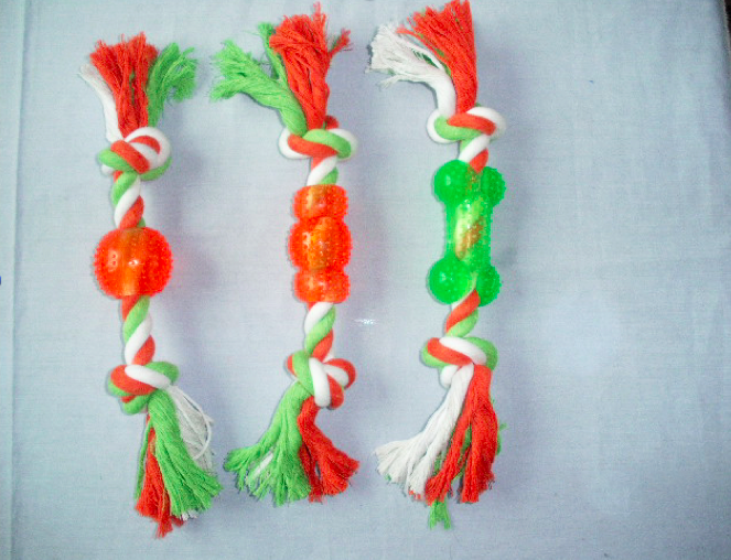 RT016 单绳双结塑胶球/哑铃/骨 12” 100-110G